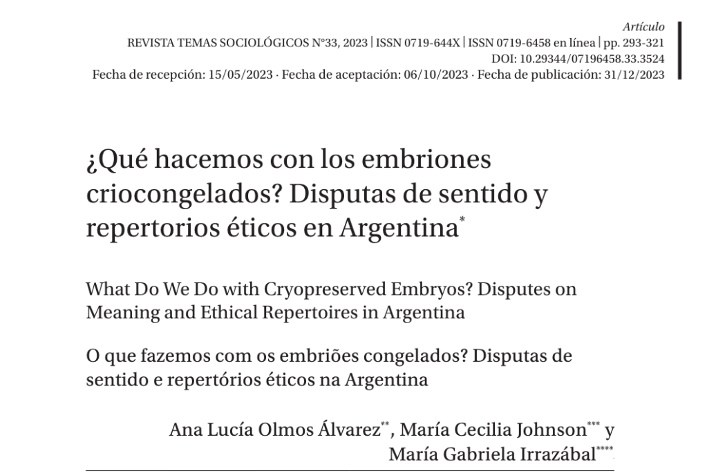 Este trabajo describe las percepciones y representaciones sobre los embriones criopreservados en la Argentina contemporánea. A partir de un abordaje con métodos mixtos en la población general y en usuarias de técnicas de reproducción humana asistida (TRHA), se interesa por los significados sobre los posibles destinos de los embriones (criopreservación, donación a terceros o la ciencia, descarte) y las tensiones sociales que se generan a su alrededor. Como herramienta analítica, se recurre al concepto de “repertorios éticos”, que incluye un conjunto de recursos socialmente disponibles para percibir, evaluar y actuar en determinadas situaciones. Los datos revelan que estos repertorios permiten dar cuenta de prácticas dinámicas y situadas, en las que se imbrican sentidos sobre la vida, el parentesco, el mercado y la ciencia, dependientes de las relaciones de poder entre los actores implicados. El análisis de datos recurrió al método comparativo de las ciencias sociales, para poder interpretar estos significados en la población general y, en particular, en usuarias de las TRHA. Los hallazgos de este artículo ponen de relieve múltiples aristas que intervienen en la configuración de los embriones, a partir de las experiencias concretas de los actores y de las relaciones de poder del contexto social.