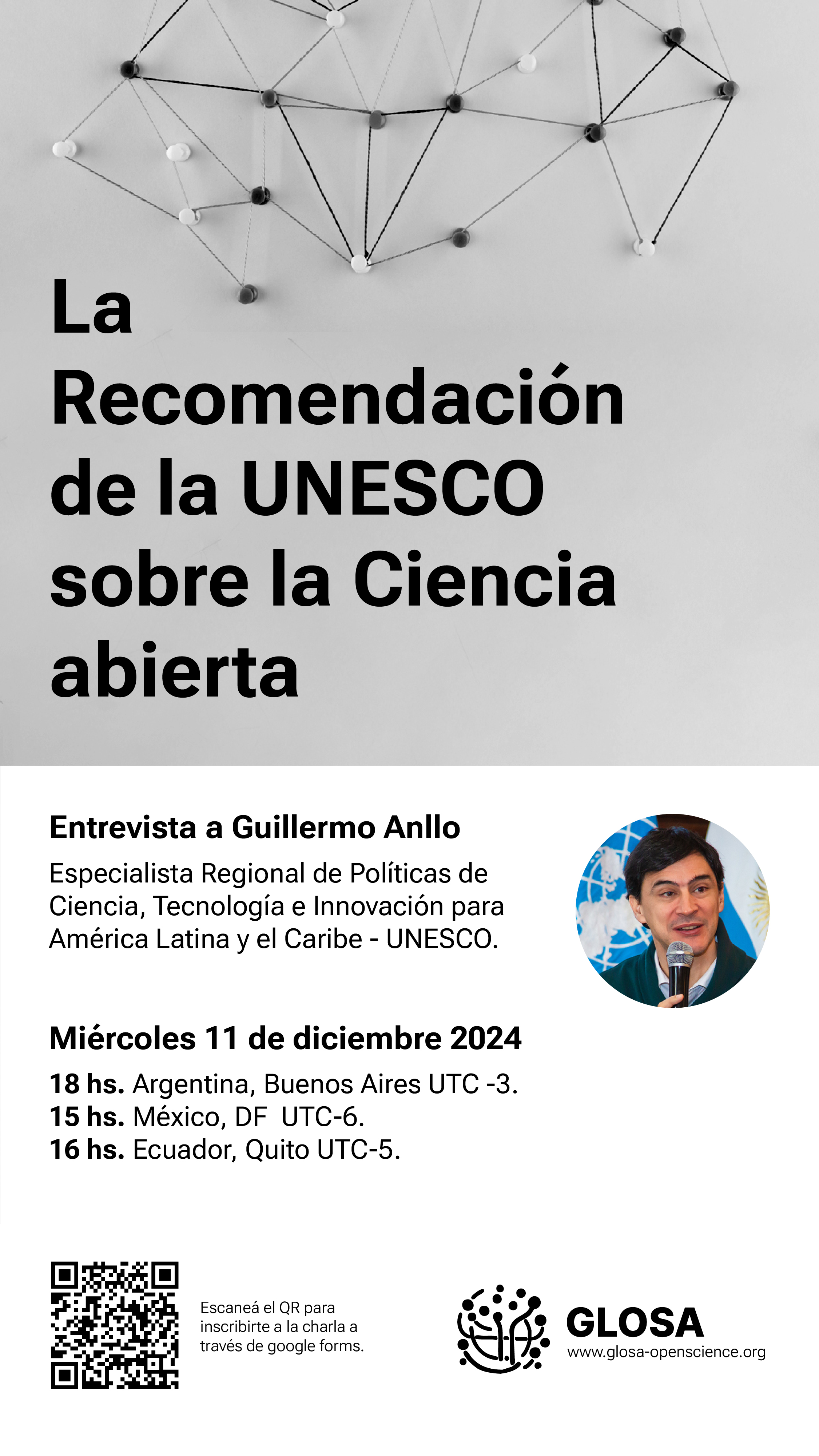 Nuestro invitado, Guillermo Anllò, Especialista Regional de Políticas de Ciencia, Tecnología e Innovación de la UNESCO, compartirá su perspectiva en una conversación clave para el futuro de la ciencia abierta y responderá las preguntas de los investigadores e investigadoras de la comunidad académica regional